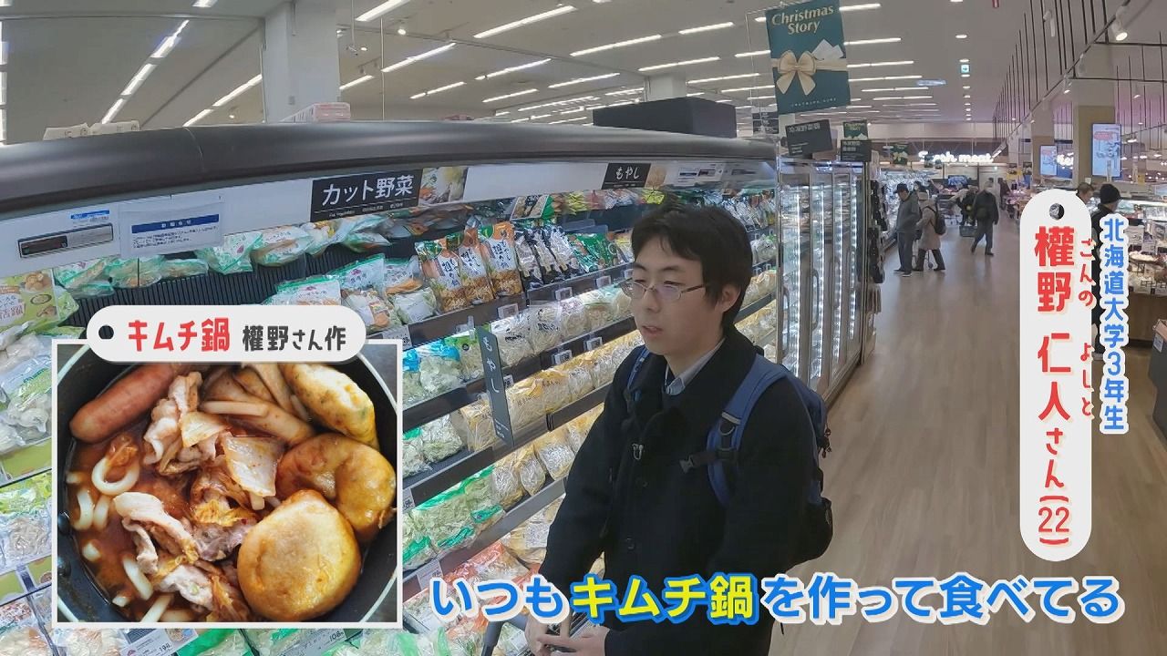 權野さん:「平日の夜は寮でごはんがでるんですけど、土日は出ないので。いつもキムチ鍋みたいなものを食べているんですけど、その材料だけ買いに来ました」