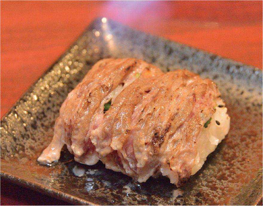 「炙りラム寿司」は単品でも注文可能。提供時にテーブルで炙るためジューシーで、独自に調味した