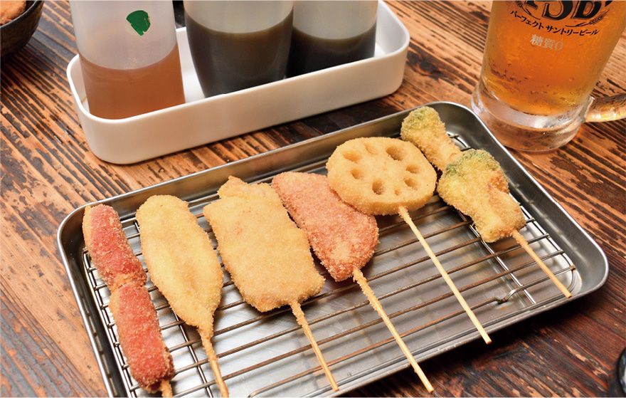 お気に入りの串カツは、野菜の甘みと程よく残る食感が、サクサクとした薄付きの衣と
