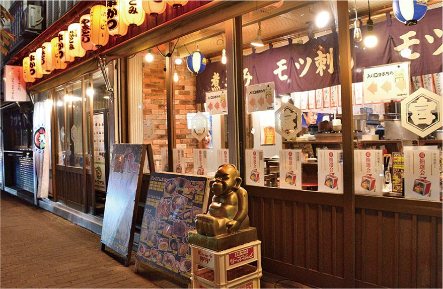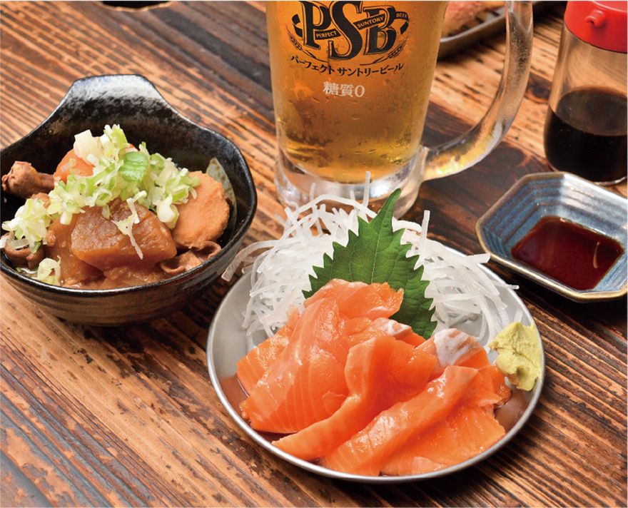 名物料理「どて煮」や「串カツ」、創作料理、ご飯ものなど居酒屋メニューを多数揃え、アルコール類も充実。