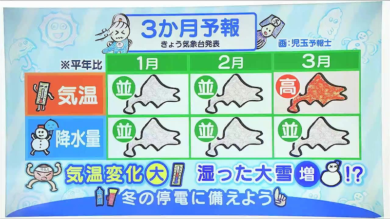 気象庁が23日に発表した3か月予報(1月~3月)によると、来年も冬型の気圧配置が長続きせず、低気圧の影響を受けやすい時季もあるようです。