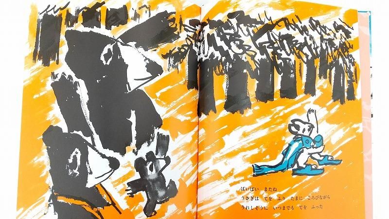 例えばラストシーン。うさぎはこぐまからプレゼントされた鮭を嬉しそうに持って帰ります。