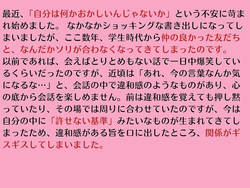 今回はそんな、自身のこころの変容に戸惑っている方からのお手紙のようです。