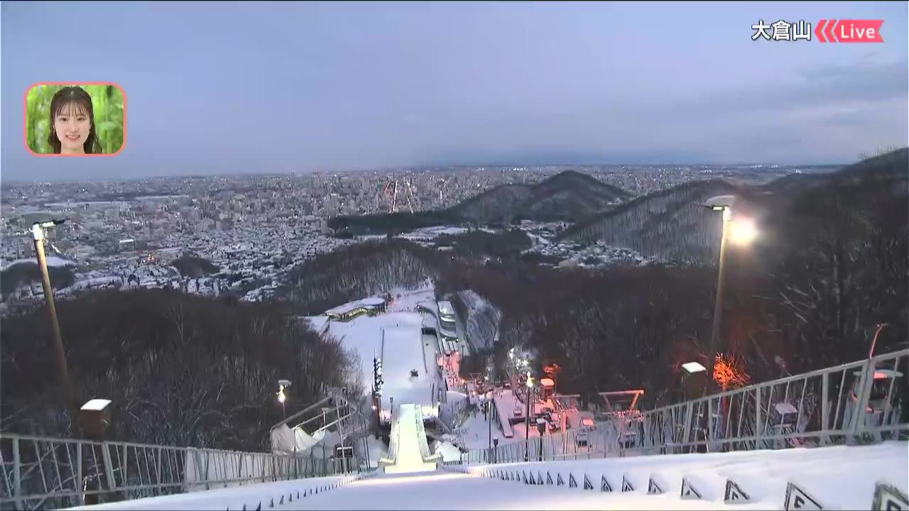 きょう26日(金)は大倉山ジャンプ競技場に来ています!児玉晃気象予報士がいるのは、標高約300メートルのスキージャンプのスタート位置付近です!