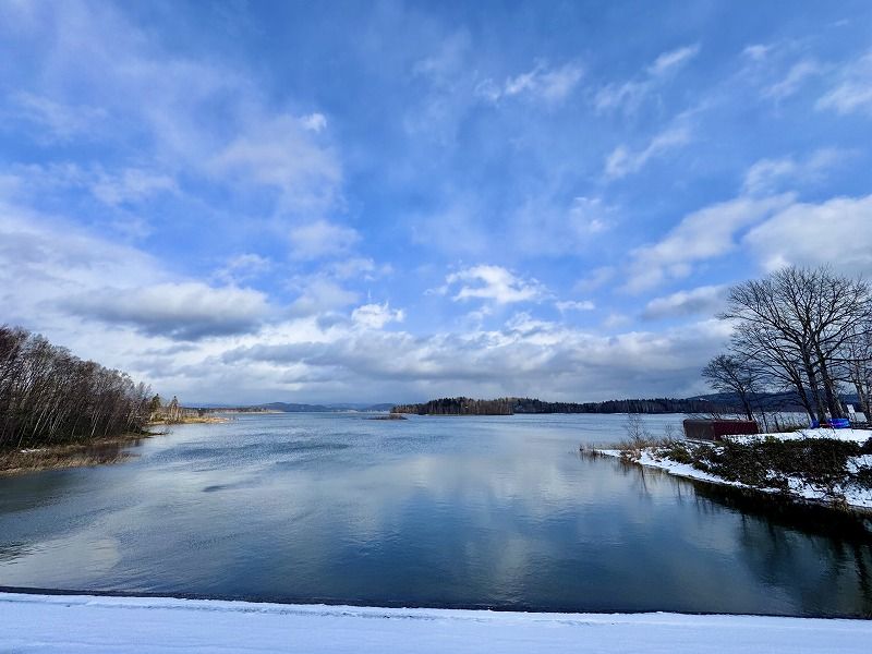 町の中心部から40分ほど走ったところで、幌加内にある2つ目の日本一スポット「朱鞠内湖」に差し掛かりました。朱鞠内湖は1943年に完成した雨竜第一ダムによって堰き止められた日本最大の人造湖で、東京ディズニーランド約30個分の広さがあります。自然豊かな朱鞠内湖は幻の魚「イトウ」が住む神秘の湖として知られ、湖面が凍結する冬場もワカサギやトラウト釣りの場としてにぎわうことから、季節を問わず釣り人たちに人気があります。
