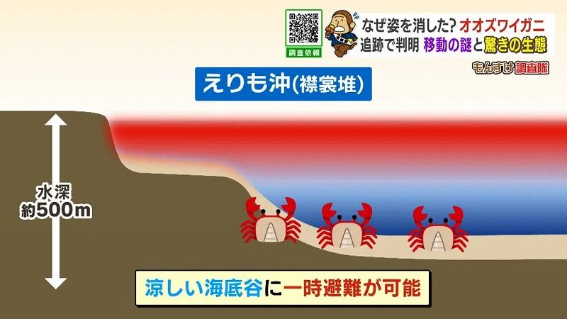 一方、えりも沖では、独特の地形や親潮の変化などで、比較的に冷涼だったため、オオズワイガニが留まり続けていると見られています。