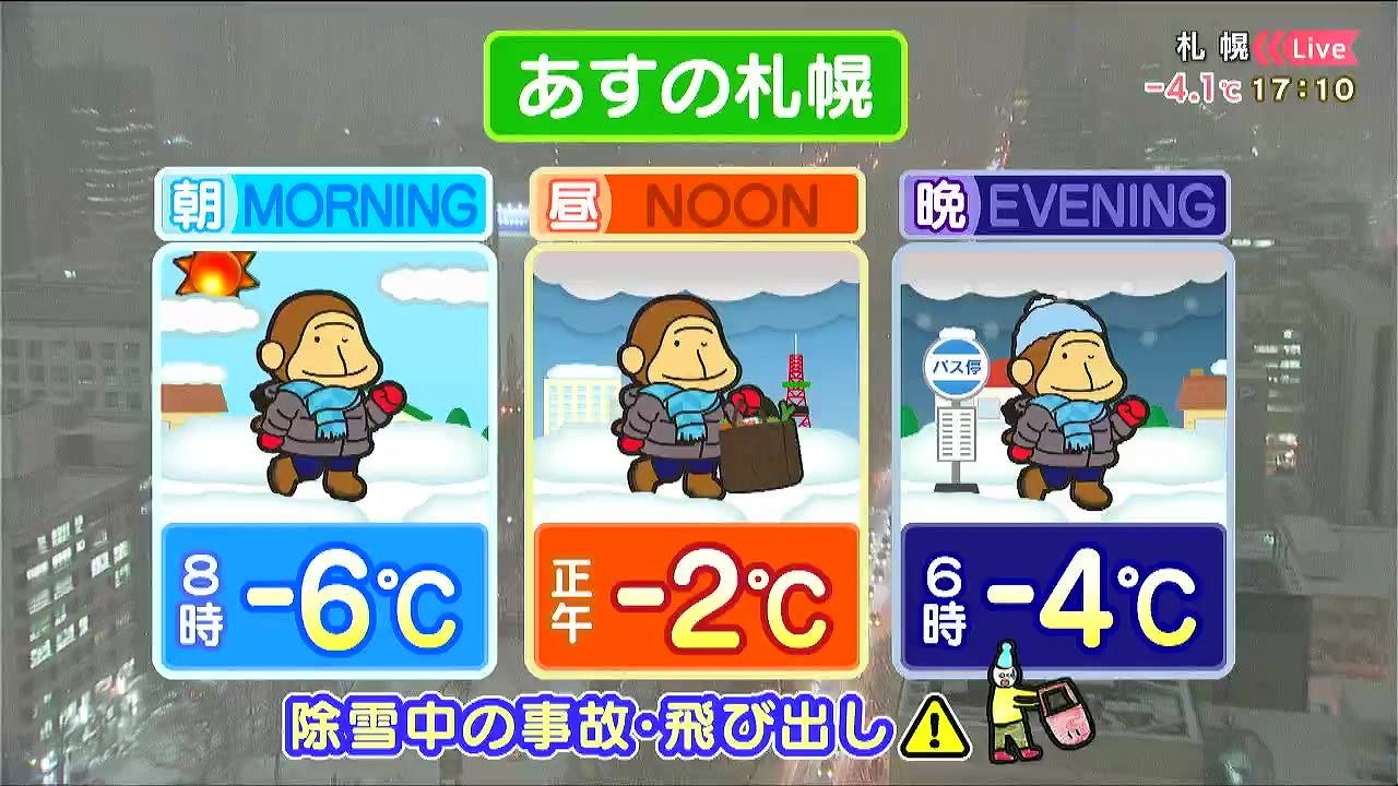 あす9日(金)の札幌です!朝昼晩の天気をもんすけでお伝えします!