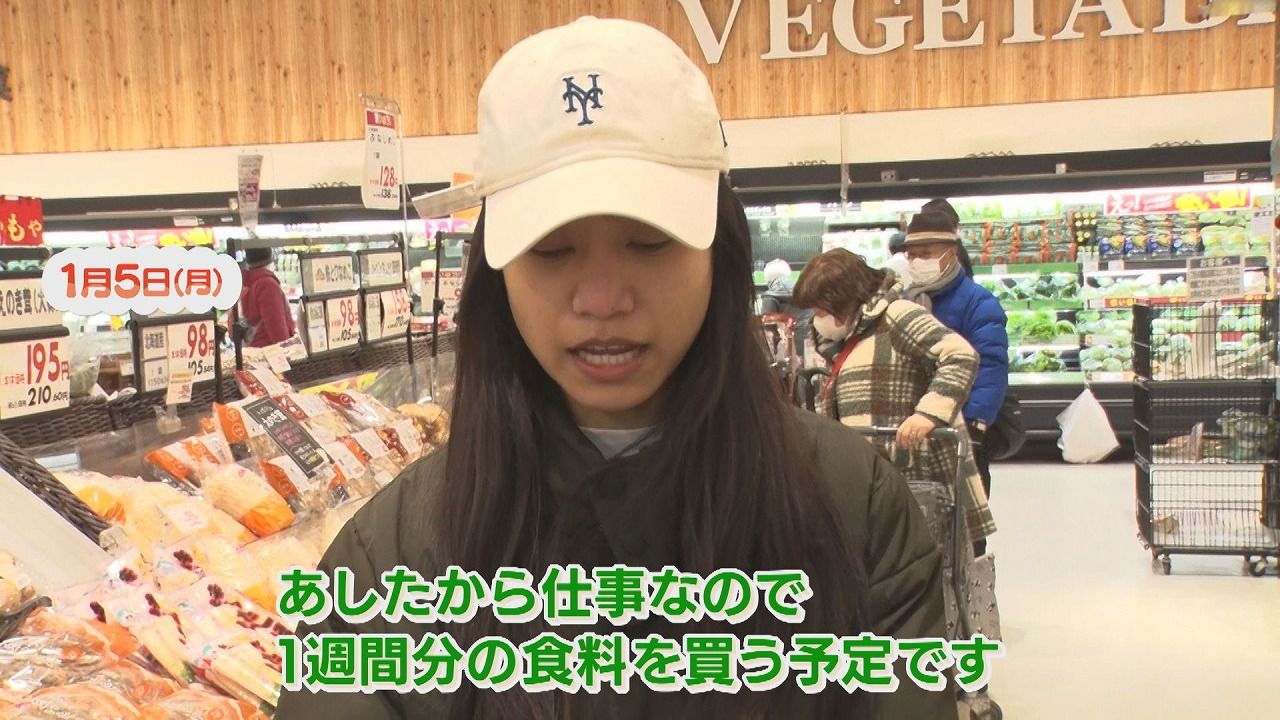 番組スタッフ:「きょうはなにを買いに?」サンさん:「明日から仕事なので1週間分の食料を買う予定です」