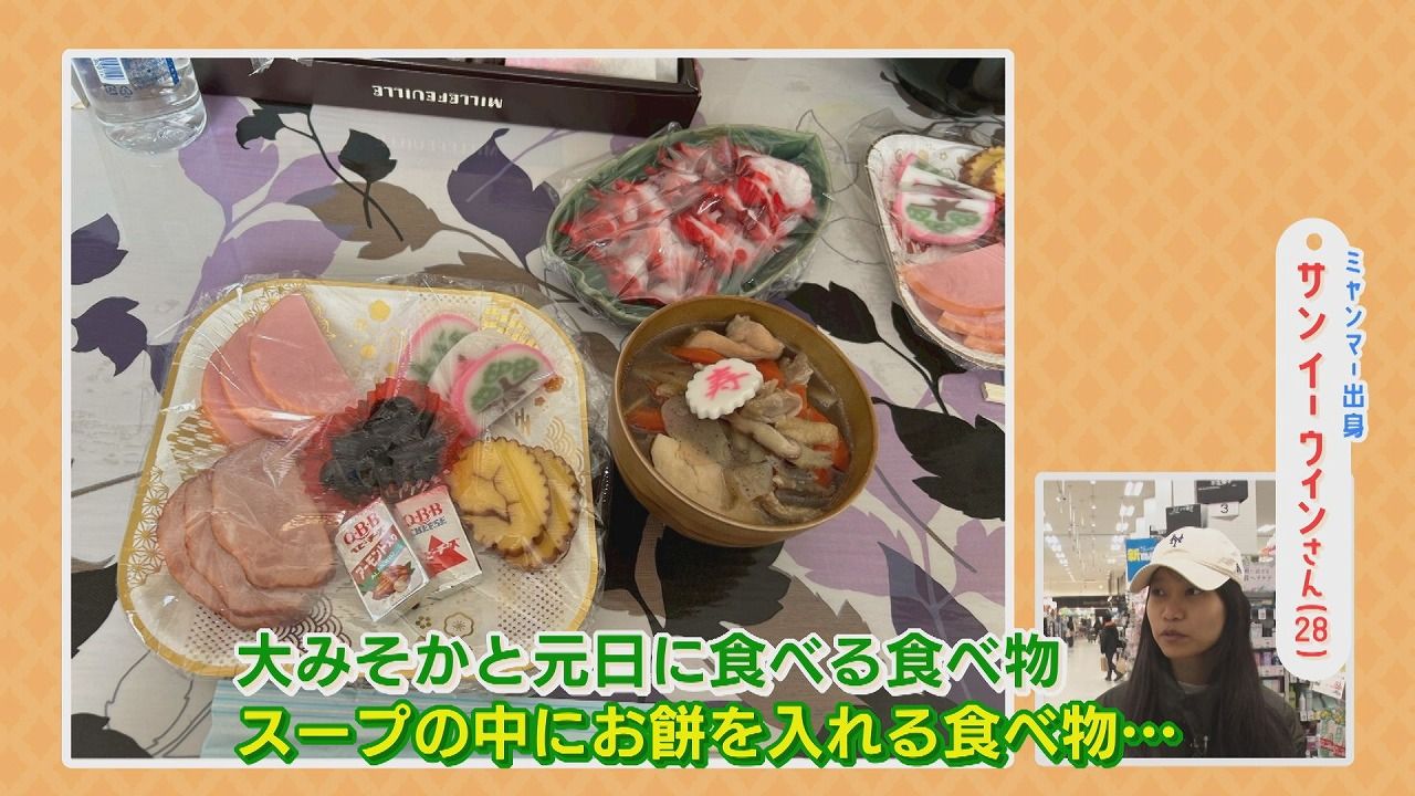 サンさん:「大晦日と元日に食べる食べ物。スープの中にお餅を入れる食べ物…」