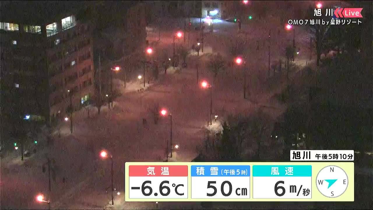 旭川は、雪が降っているように見えます。