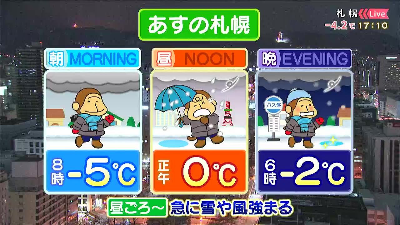 あす13日(火)の札幌です!朝昼晩の天気をもんすけでお伝えします!