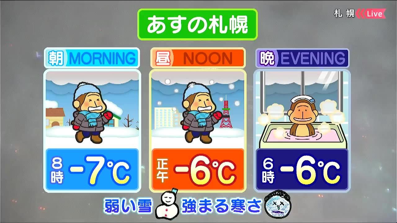 あす14日(水)の札幌です!朝昼晩の天気をもんすけでお伝えします!