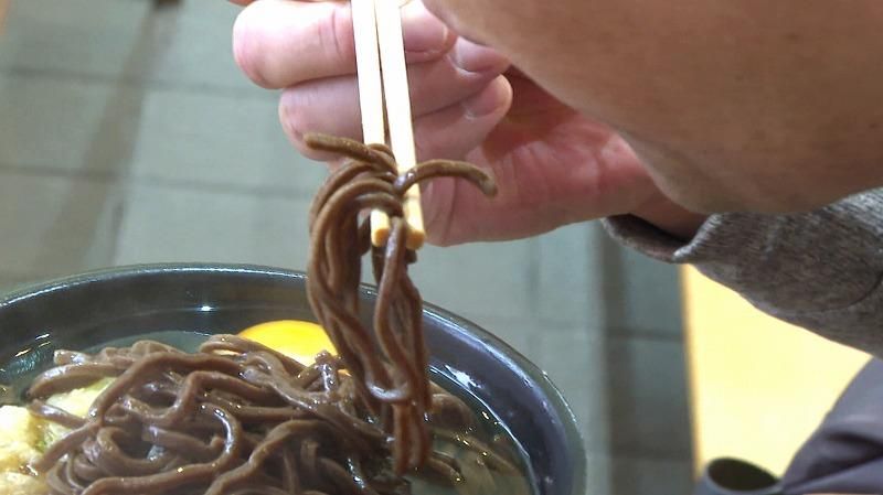 期間限定で復活した北海道北部・音威子府駅の名物「黒い駅そば」。