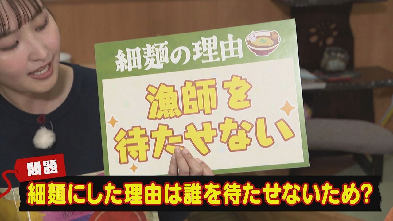 クロちゃん:「漁に出て身体が冷えた状態で寒いから『早く食べたい』っていうときに、すぐに出してすぐに温まりながらお腹をいっぱいにできるようにってこと?」松尾アナ:「そういうことなんです!」