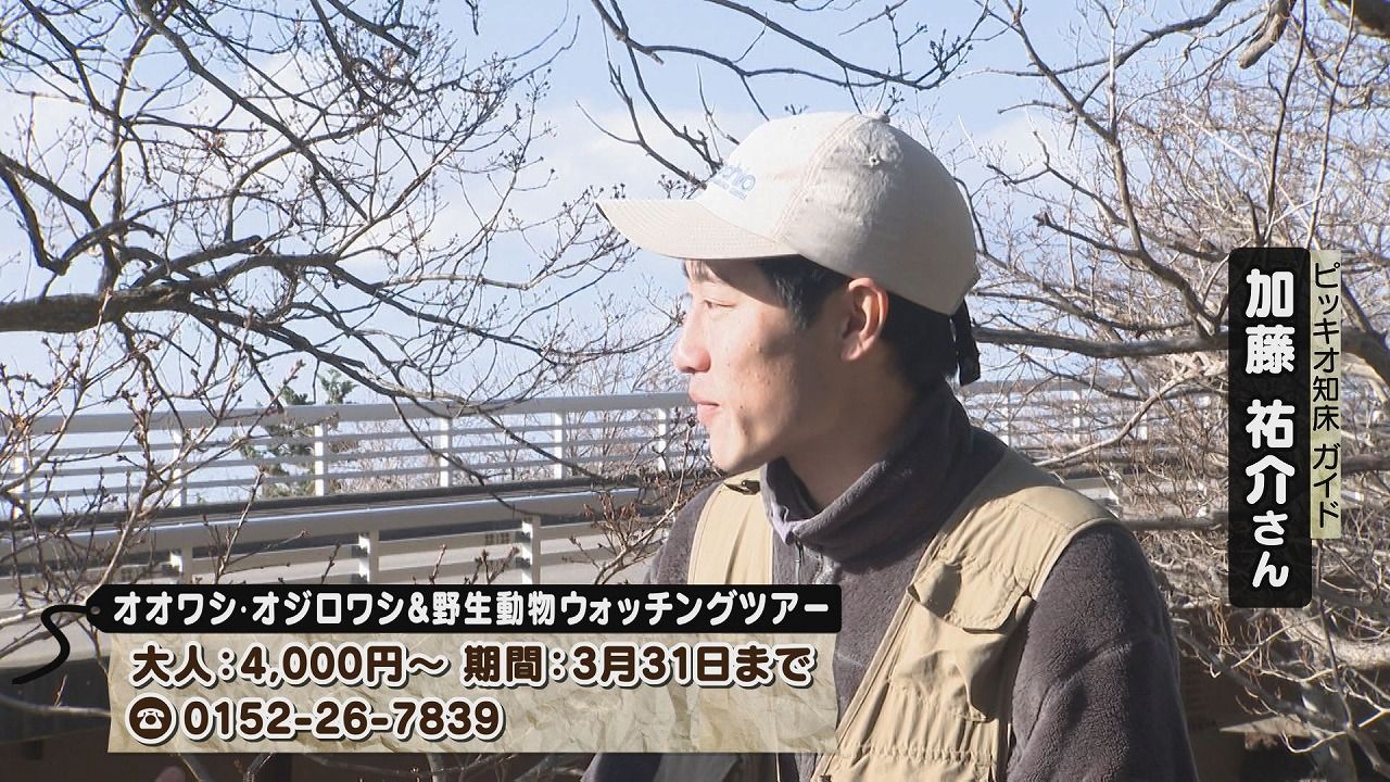 ガイド 加藤さん:「天然記念物に登録されているオオワシ・オジロワシを見てもらおうと思います!」