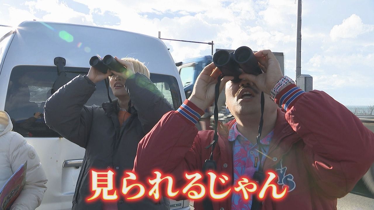 ガイド 加藤さん:「お、後ろのほうに飛んでます!」クロちゃん:「まって本当?あれ」