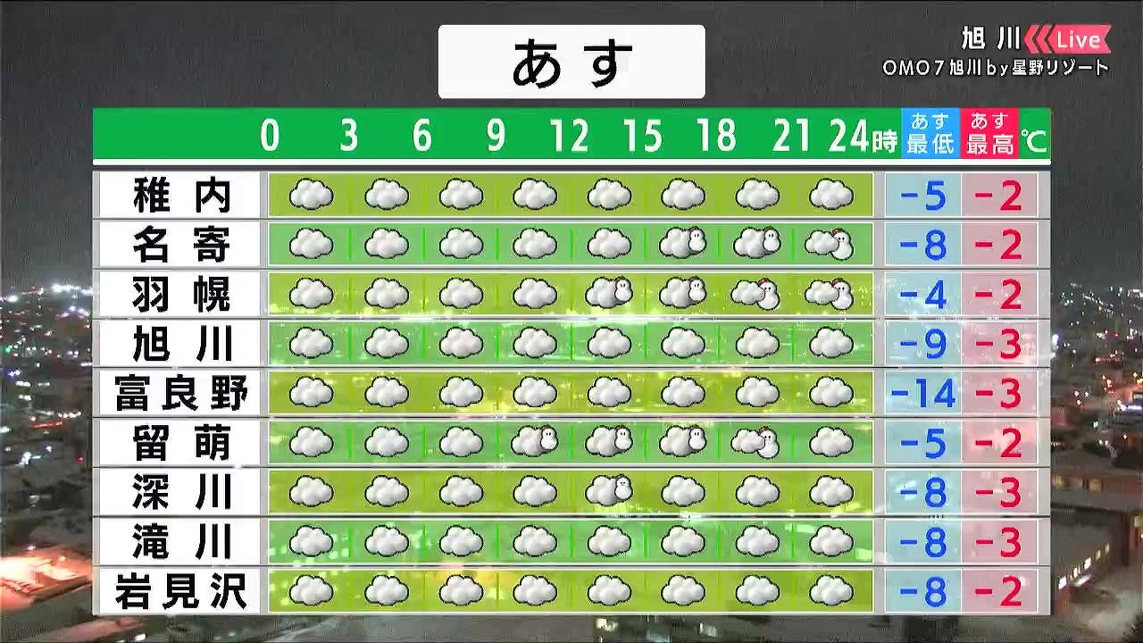きょう15日(木)の旭川は、弱いながらも雪が降り続きました。今夜からあす16日(金)は大きな崩れはなさそうです。