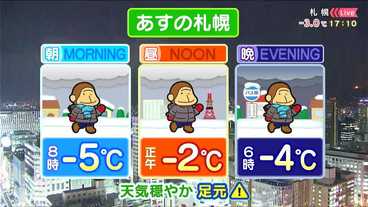 あす16日(金)の札幌です!朝昼晩の天気をもんすけでお伝えします!