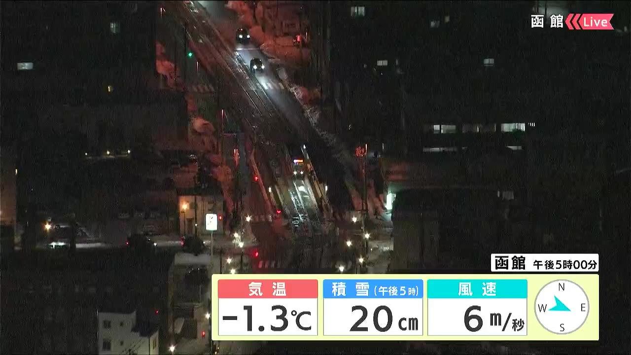 積雪は20センチ。きょう16日(金)プラスの気温になった函館はきのうの午後から5センチくらい積雪が減りました。あす17日(土)朝はとけた雪が凍るので、足元に注意して下さい。