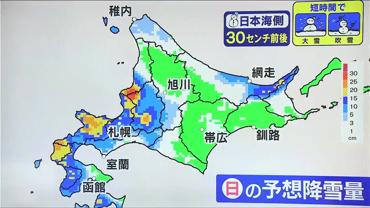 日曜は雪の降り方に注意が必要です。知床周辺で10~20センチ、特に多くなるのが、留萌や札幌周辺など道央で30センチ前後の大雪です。雪の原因は…