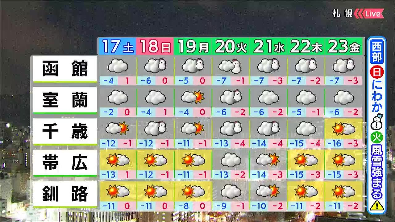 ※16日午後5時時点の情報です。最新の気象情報は、HBCウェザーセンターのホームページなどでご確認ください。HBCは気象庁の認可を2001年に得て以来、民間気象会社の一つとして「HBCの独自予報」を発信しています。