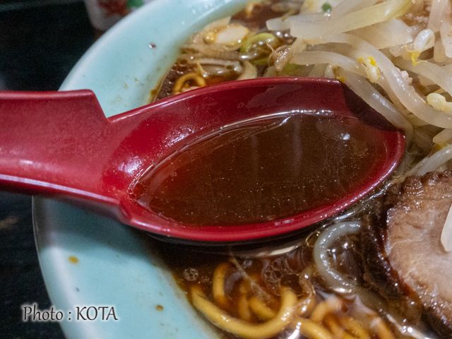 おおっ、濃厚な醤油色。誰が見ても醤油ラーメンという姿に、思わず惚れぼれしてしまう筆者である。