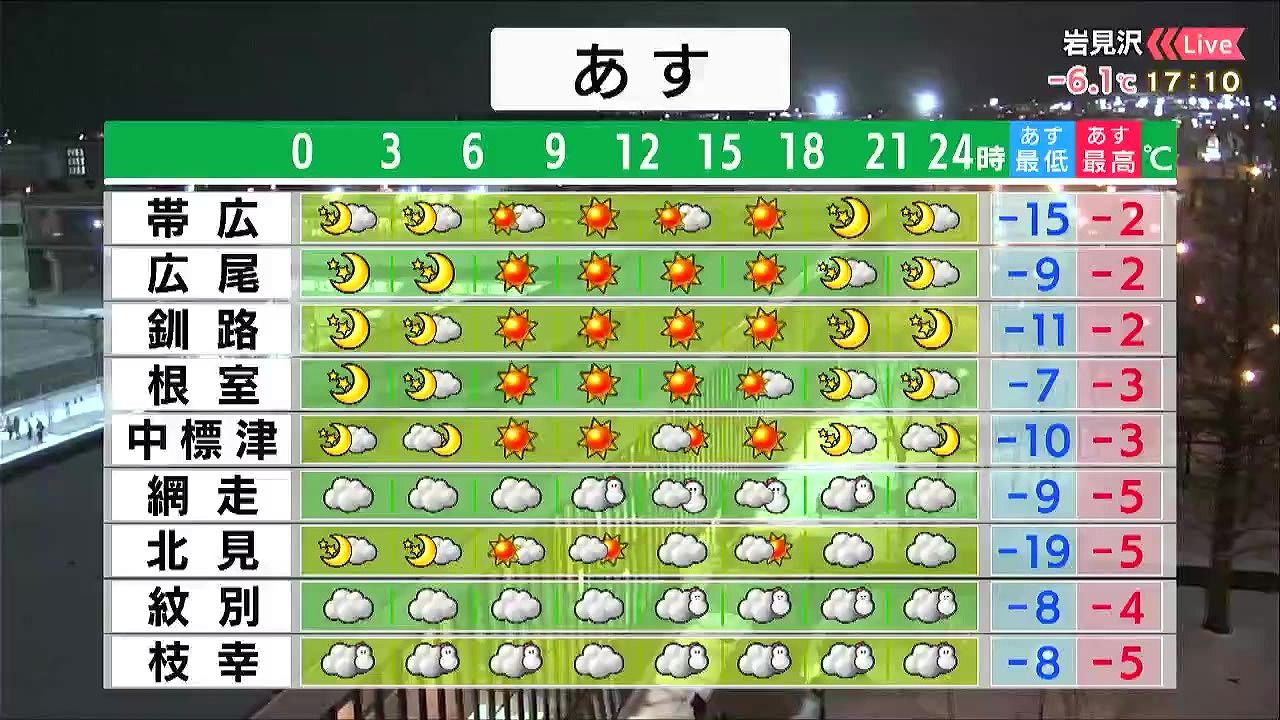 道東は晴れて、空気が乾燥します。オホーツク海側の海岸部は、あす22日(木)にかけて5センチ前後の雪が降り、知床半島周辺では10センチくらいの雪が降るでしょう。