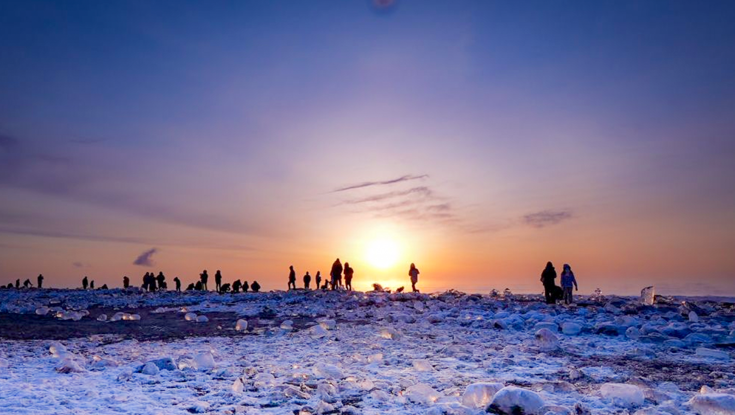見ることができるのは、十勝川河口近くの大津海岸で、見頃はおおよそ1月中旬〜2月下旬の厳寒期。