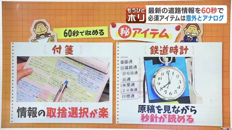 刻々と変わる道路状況を、原稿に盛り込むには、ピッと貼って、ピッとはがせるふせんが便利なんだそうです。
