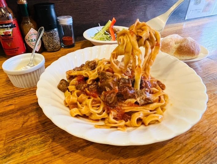 この日いただいたのは人気の牛すね肉ラグーソースパスタ。
