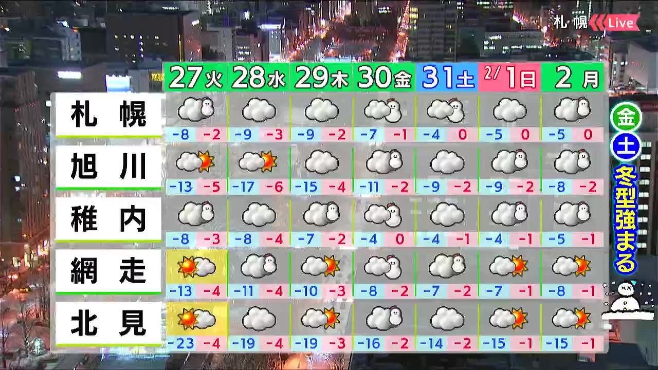 あす27日(火)の札幌です!朝昼晩の天気をもんすけでお伝えします!