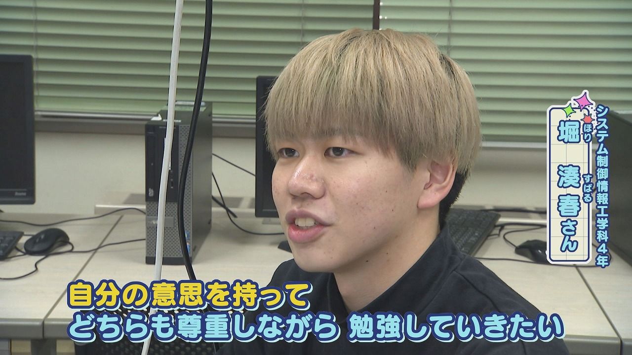 堀さん:「最近AIとかもでてきて、課題とかもAIに任せればいいやという風潮がある。けれど、AIを使うにしろ何を使うにしろ、自分の意思をもってどちらも尊重していいとこ取りをしながら勉強していきたい」