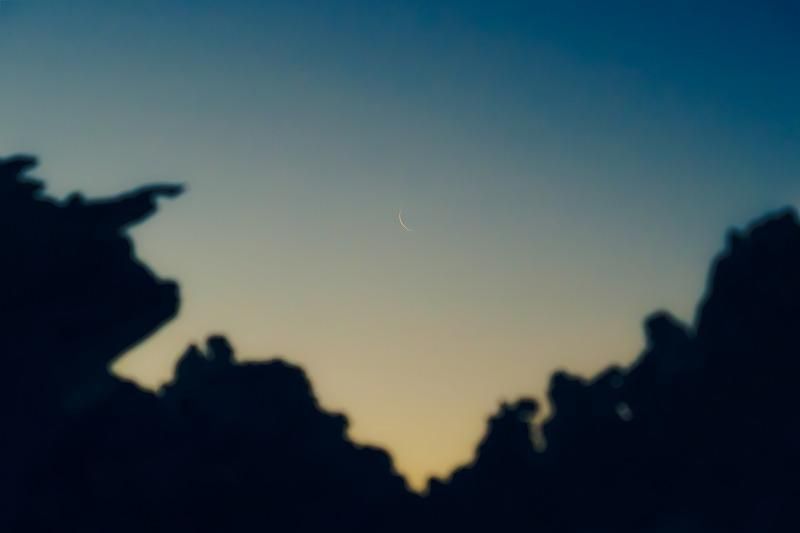 雪の山の隙間から見える薄い月も、陽の光を浴び、眩しい目を閉じるように姿を隠そうとします。