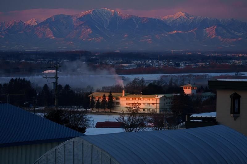 日高山脈の頭の部分が少しづつ太陽に照らされ始めるような光景から1日が始まります。