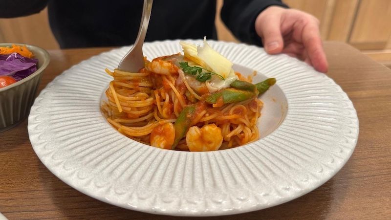 パフェを食べている人が多い印象だけど、僕がよく頼んでいたのは、「トマトソースパスタ」。