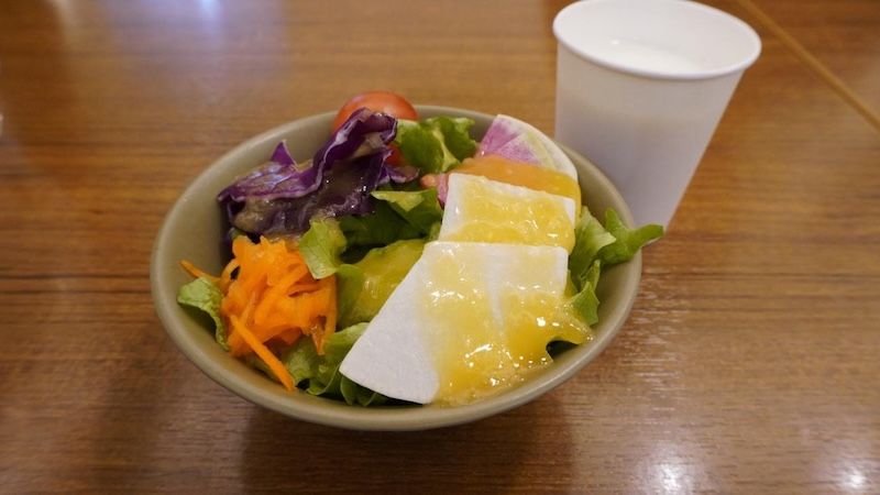 ランチ以外の時間帯だとサラダ付きで1350円なので、実質130円でソフトクリームとドリンクが付いてくるというお得さ。