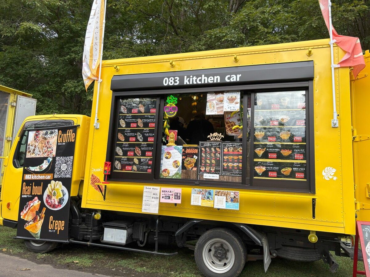 目立つ黄色のキッチンカーはパッと目につき元気がもらえます。