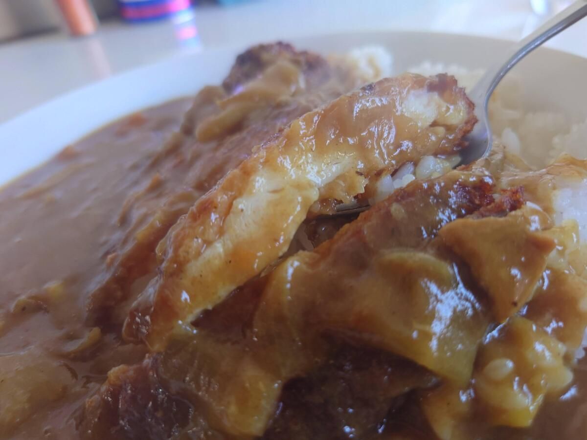 カレーはコク旨なタイプで中辛より辛さ控えめで美味しい♪