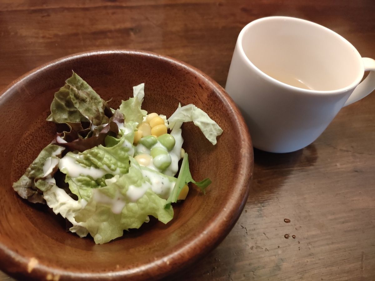 ランチメニューにはサラダ&スープバーがサービスで付いてきます。