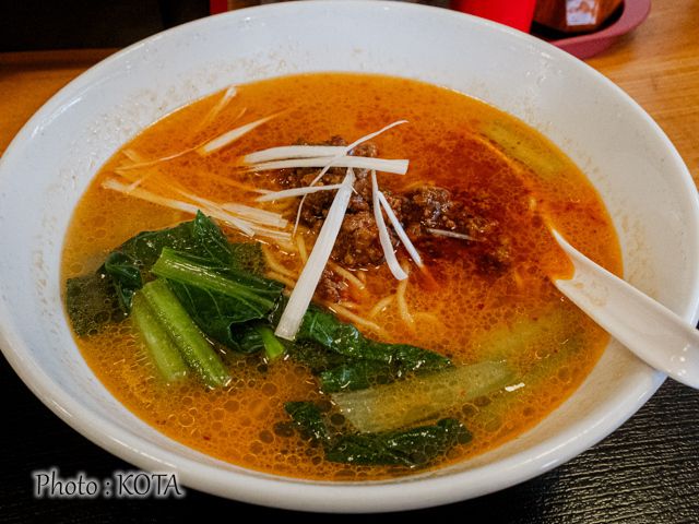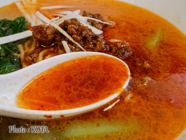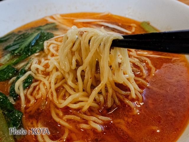 担々麺というと、ゴマが効いたこってり感をイメージしがち思うが、それと一線を画すのが同店の担々麺。