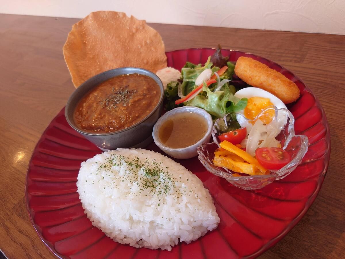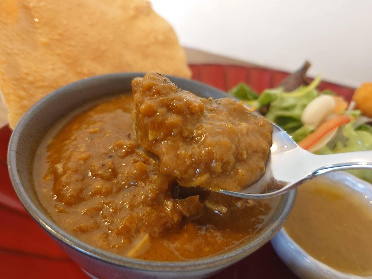 カレーは、コクとフルーティーな甘さがあり、辛さは控えめ。