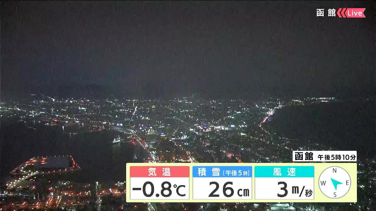 函館ではあす29日(木)も雪の降る時間があります。渡島西部の松前町周辺では、あす午後は雪の強まるおそれがあります。