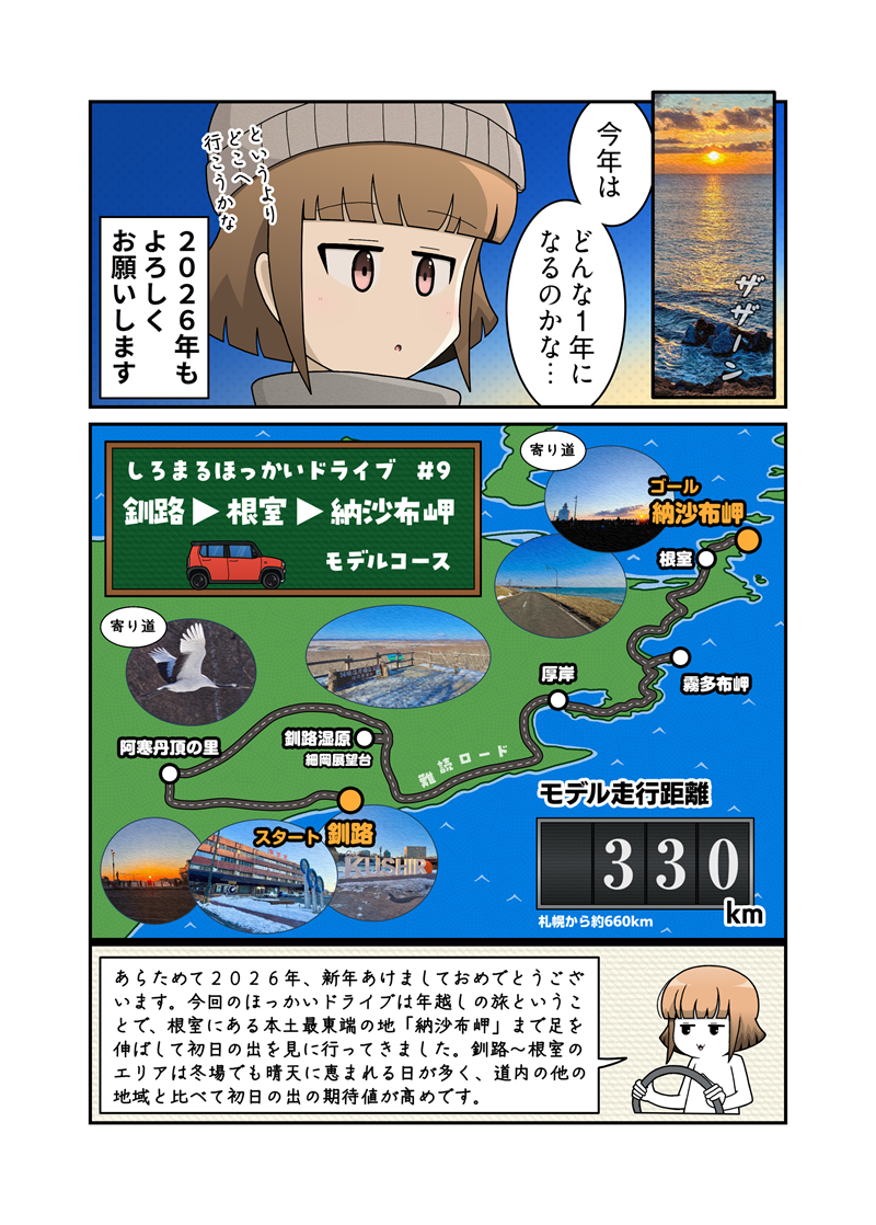 前回のお話:【漫画】これぞ本気の超★ホワイトクリスマス!「豪雪観光」を満喫できるドライブはいかが?【しろまるドライブ8話】 しろまるさんインタビュー記事:北海道の“端っこ暮らし”に憧れて.....。 稚内からご当地ネタを漫画で発信!『しろまる最北日記』著者インタビュー 連載ページ:連載|しろまるほっかいドライブ~しろまるさんは距離感がおかしい~