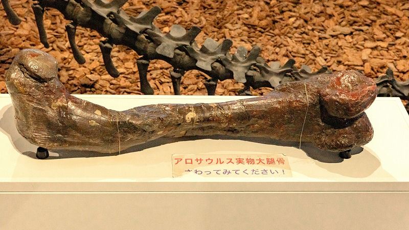 そしてなんと、アロサウルスの大腿骨の「実物化石」にも触れちゃうんです!