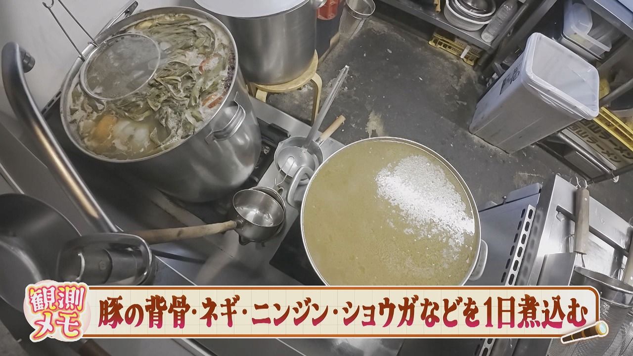 ラーメン用のスープには、豚の背骨やネギなど1日煮込んだものを使用しています。