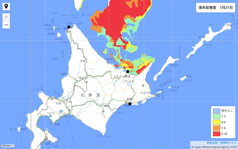 この先も、流氷の接岸する範囲はさらに広がる見込みで、オホーツク海側では本格的な流氷シーズンに入っていきそうです。