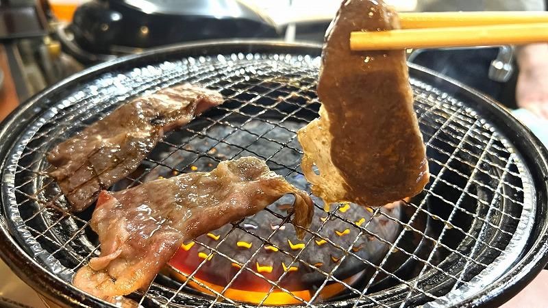 さて、店名にもなっている「焼きすき」と「焼きしゃぶ」。すき焼きやしゃぶしゃぶとの違いは…?というと、鍋でいただくわけではなく、網で「焼いて」食べるスタイル!