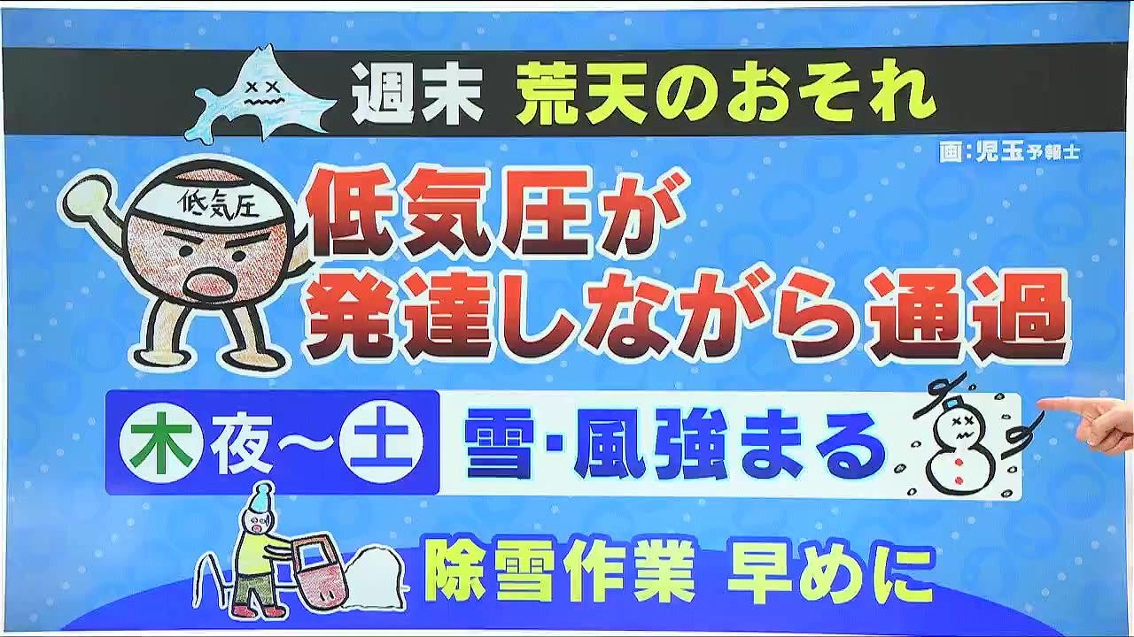 低気圧が発達しながら北海道付近を通過するため、木曜の夜から土曜日にかけて、今回は全道的に雪や風が強まります。