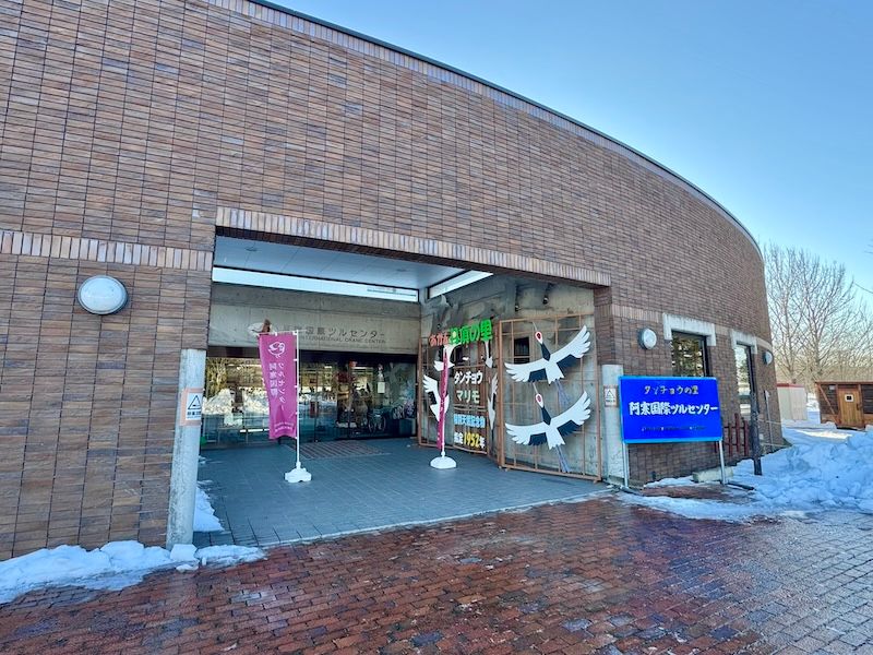 出かける続いて、国道を挟んで数百メートル先にある「阿寒国際ツルセンター グルス」を訪れます。道の駅から歩いても行けますが、各施設ごとに駐車場が完備されているので、車での移動もOKです。