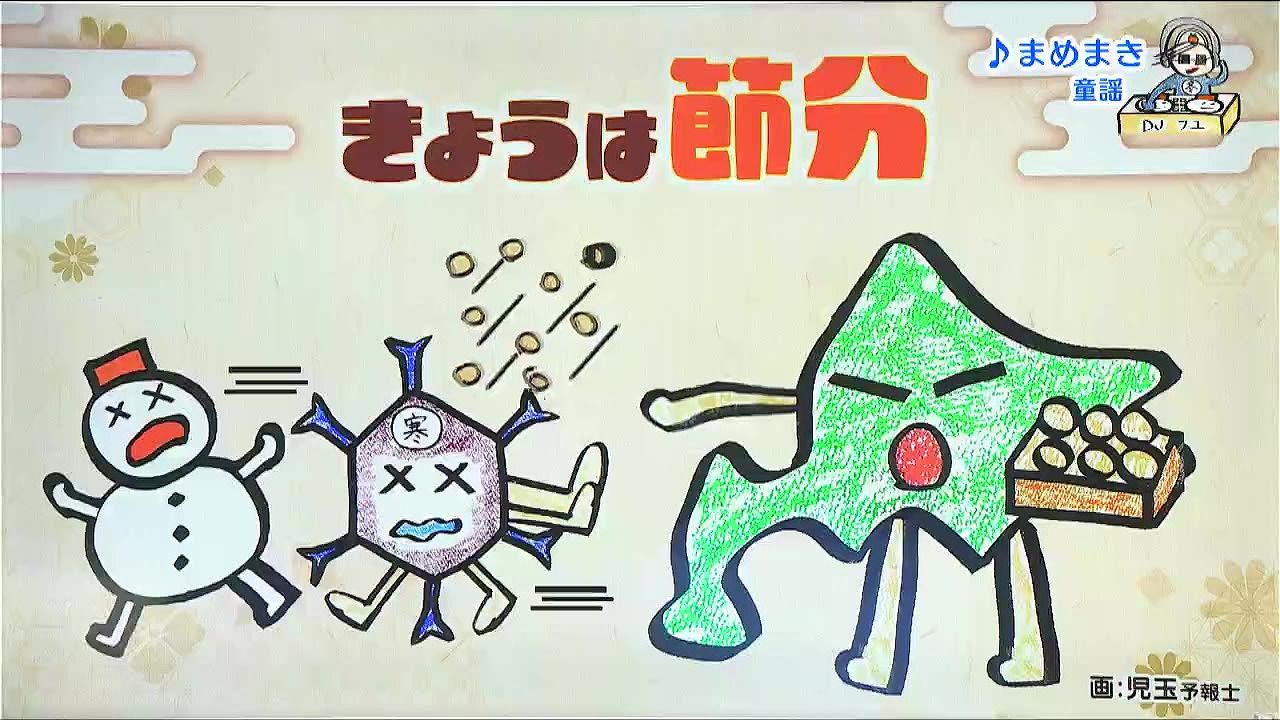 きょう3日(火)は節分です。北海道くんも豆まきしています。